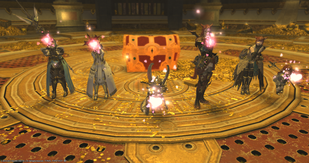 As the title states, the Maps Club members were blessed by the Rainbow Troll Dungeon Door God today as both N’tohj and Headmistress Kela reached the seventh chamber of the Aquapolis Treasure instance during today’s meeting. Spoils included glamour, crafting ingredients, crystals, materia, gil, tomes, orchestrion rolls, and another new tree for the yard.